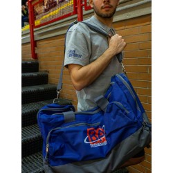 Borsone con scomparto principale e tasche laterali. Con chiusure a zip e tracolla.