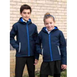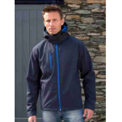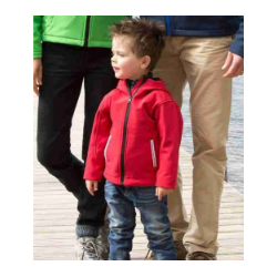 93% poliestere, 7% elastane. Giacca in softshell 3 strati anti-vento, traspirante e impermeabile, tessuto interno in caldo micropile, cappuccio regolabile e rimovibile.